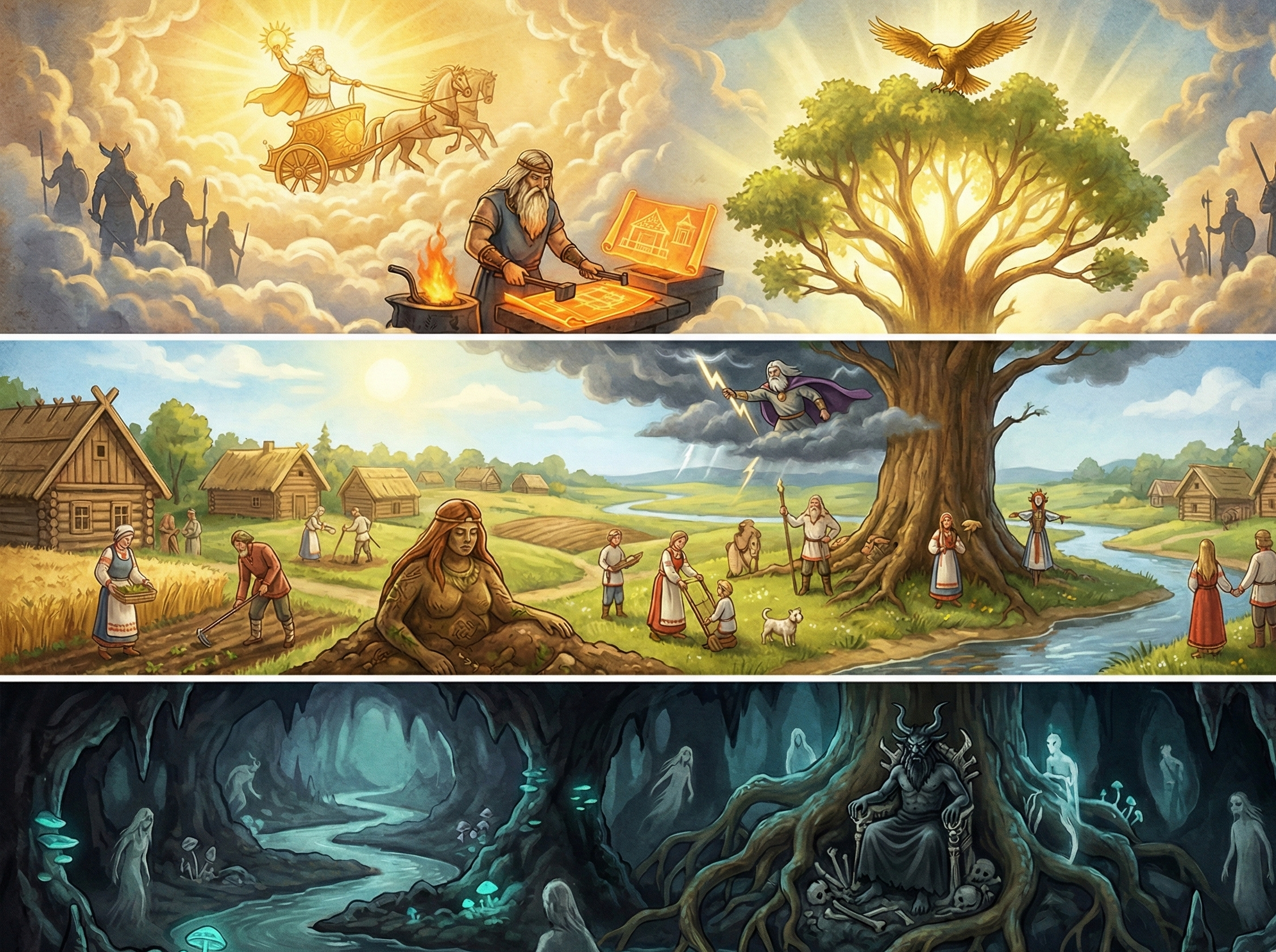[expand] The Principal Deities: Powers Beyond Comprehension   The Slavic pantheon was not hierarchy of distant Olympians but collection of forces manifest in the world, powers that could be experienced…